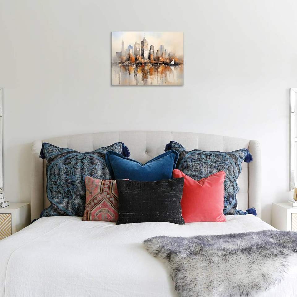 Modern City Abstract Canvas Wall Art Colorful Skyline Picture with Textured Design Framed and Ready to Hang Made in China