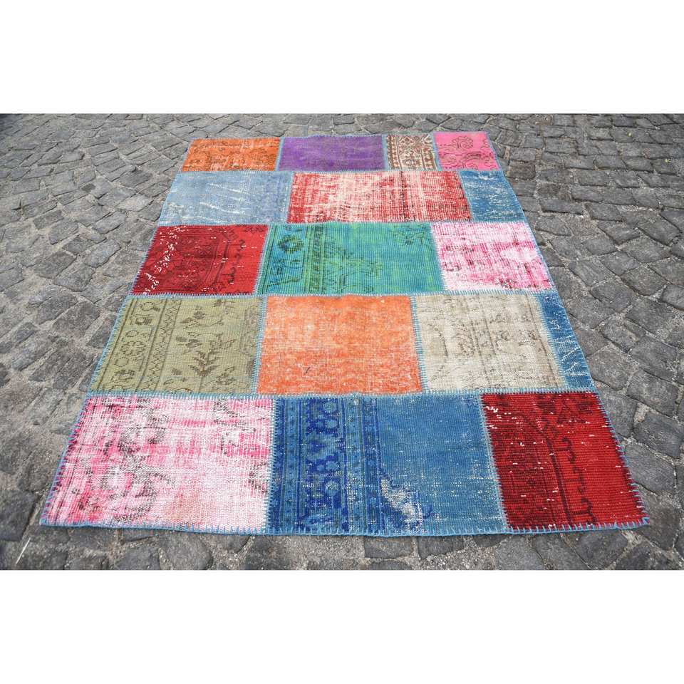 Modern Classic Beige Wool Polyester Patchwork Rug 5 X 6.3 ft Large Area Rectangle for Home Living Room Bedroom Hallway Use Latex