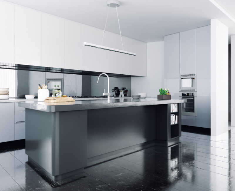 Modern Classic Island Modular Kitchen Cabinets Australia Standard Black Melamine Finish Luxury Lacquer Acrylic Steel Marble
