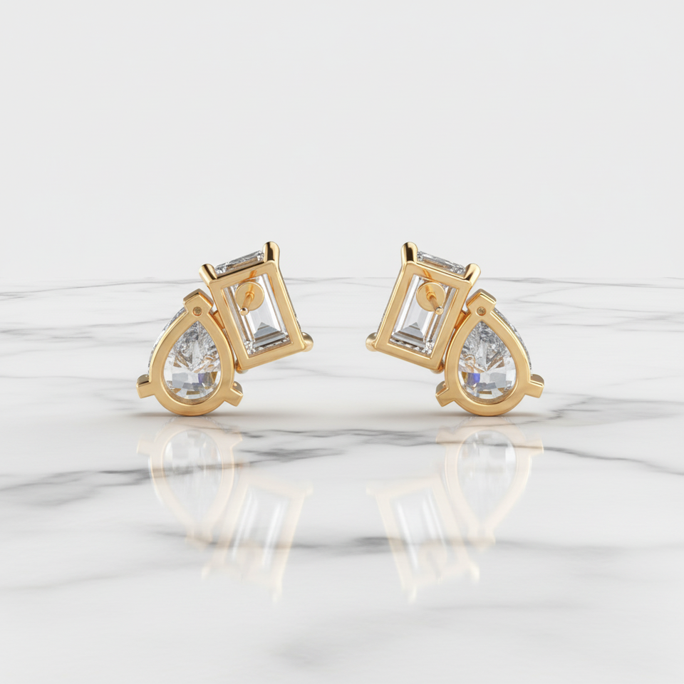 Modern Classic Moissanite Diamond Stud Earring Emerald Pear Cut Stylish Dual Shape Design 925 Silver Toi et Moi Fashion Earrings