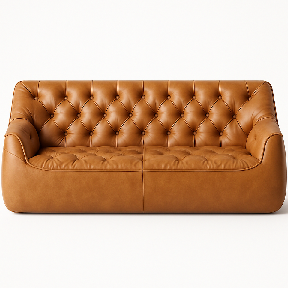 Modern Classic Tufted Leather Sofa 3-Seater Curved Eco-Friendly Villa Park Caramel Brown Genuine Leather School Workshop Living