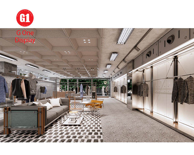 Modern Clothes Shop Design Boutique Men Clothing Display Racks Wood Garment Shop Display Design