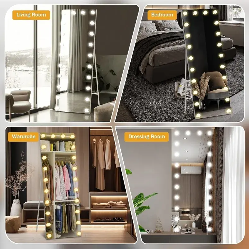 Modern Cloud Shaped LED Floor Mirror Light White Metal Frame 64X21 Inch Full Length Mirror with Lights