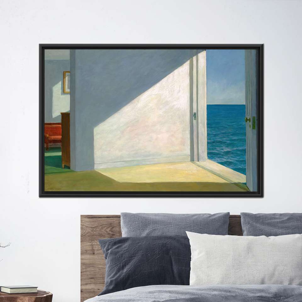 Modern Coastal Canvas Print, Edward Hopper Inspired Artwork for Elegant Decor,1P:Black Framed