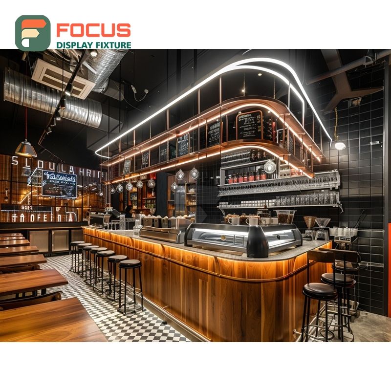 Modern Coffee Display Rack Retail Mug Display Shelf Walnut Finish Cafe Product Display Rack
