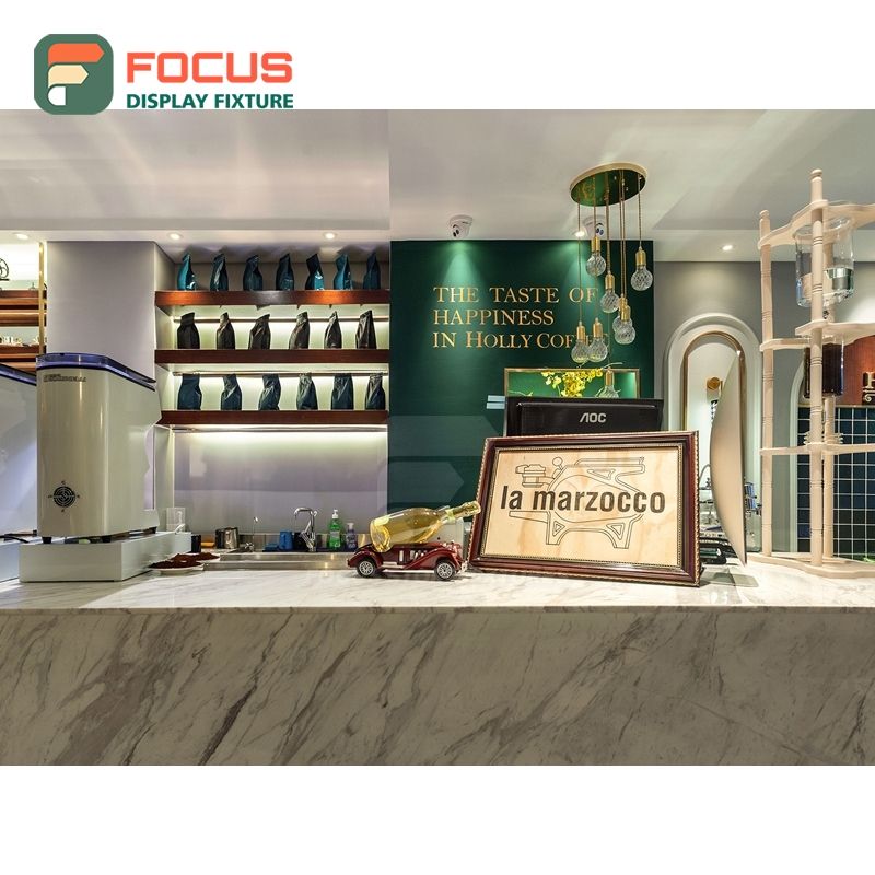 Modern Coffee Merchandise Display Rack Solid Wood Frame Biscuit Snack Display Coffee Bar Display Rack