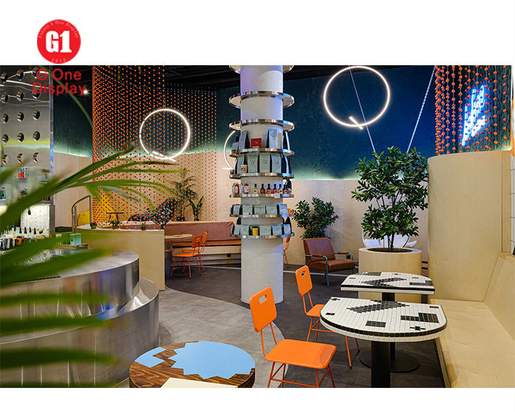 Modern Coffee Shop Interior Design Customized Fashion Retail Display Wooden Coffee Bar Counter with LED Lighting