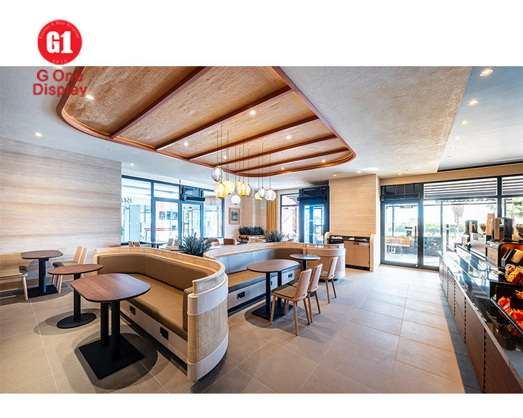 Modern Coffee Shop Interior Layout Design Wholesale LED Lighting Display Bar Counter Customized Coffee Shop Chairs Tables