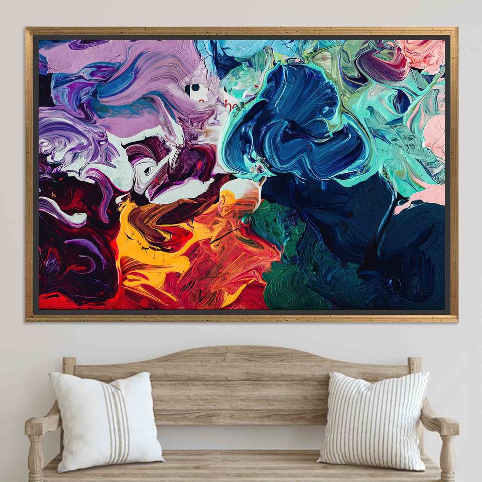 Modern Colorful Printed Canvas Art: Abstract Acrylic Design,GOLD FRAMED CANVAS