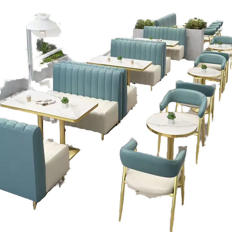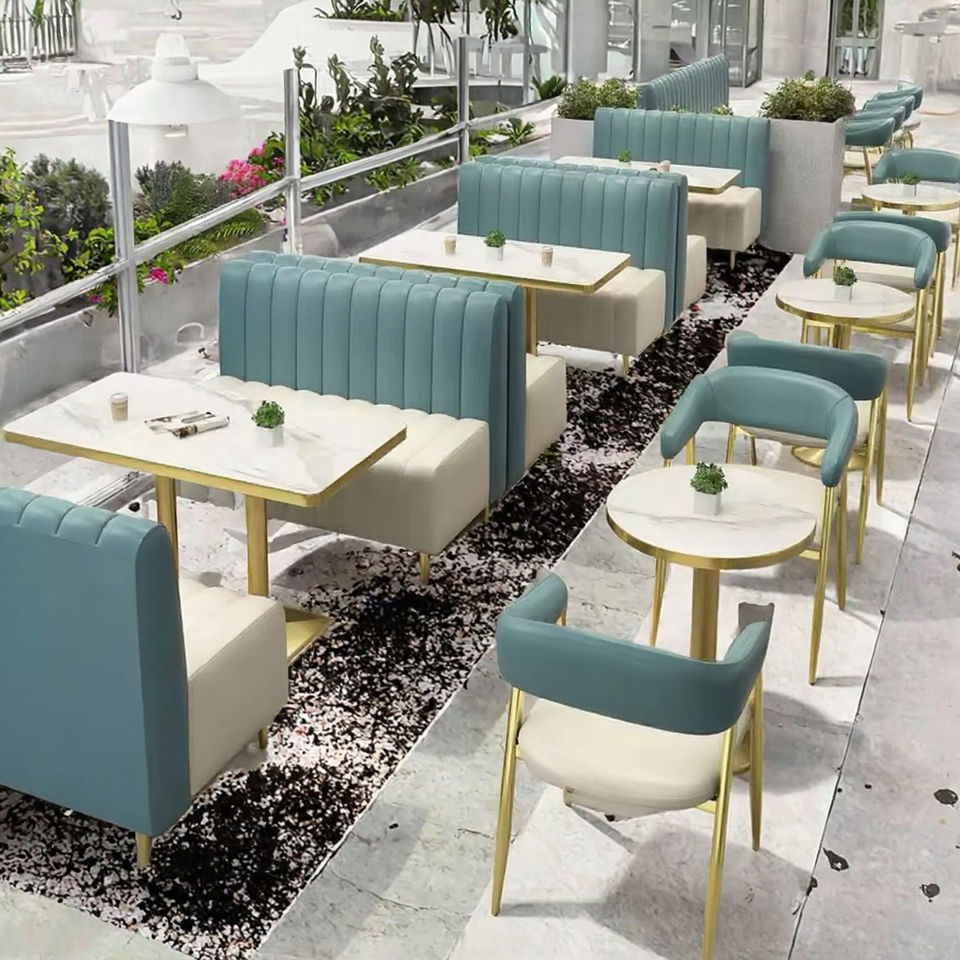 Modern Commercial Restaurant Furniture Dining Set PU Leather Seating Sectional Sofa Booth Plywood Metal Table Dessert Serving
