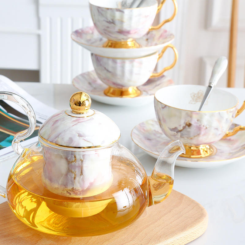 Modern Complete Herbal Tea Set Household Ceramic Flower Tea Pot High Temperature Resistant Glass British Afternoon Tea Sets