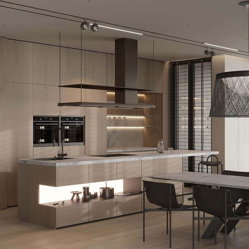 Modern Complete Smart Kitchen Cabinets Design Villa Wood Melamine MDF Lacquer Dining Sink Backsplash Apartment
