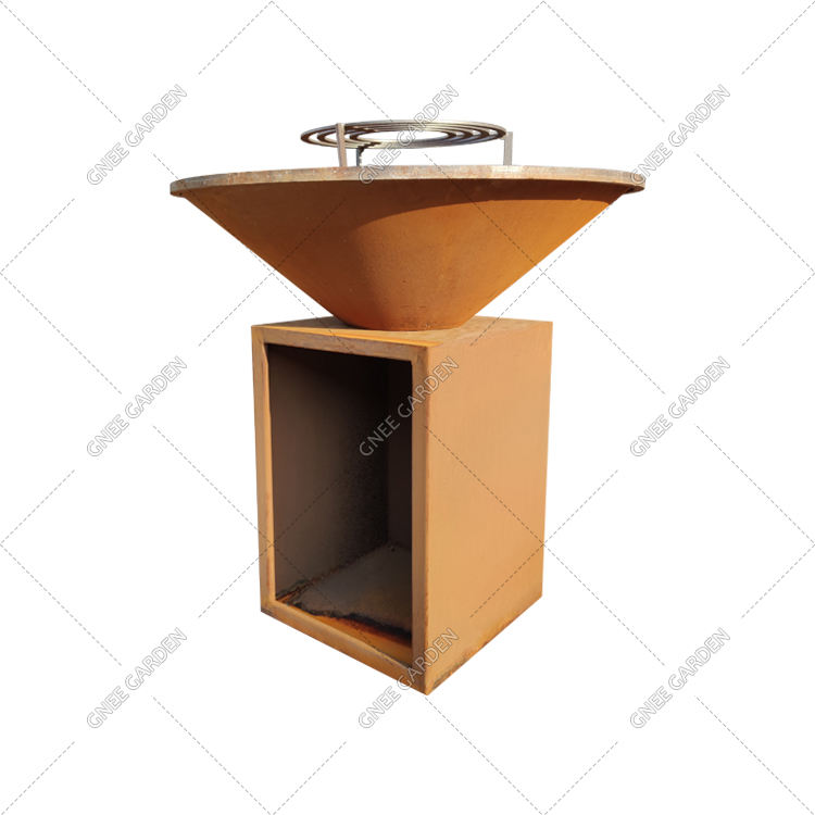 Modern Conical Weathering Steel Fire Pit Grill Portable with Installed Wheels for Easy Mobility
