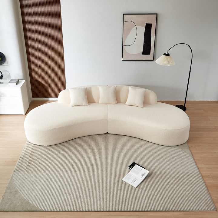 Modern Contemporary 3 Seat Lambswool Fabric Sofa Bed with Pillows Beige for Apartment Bedroom and Living Room