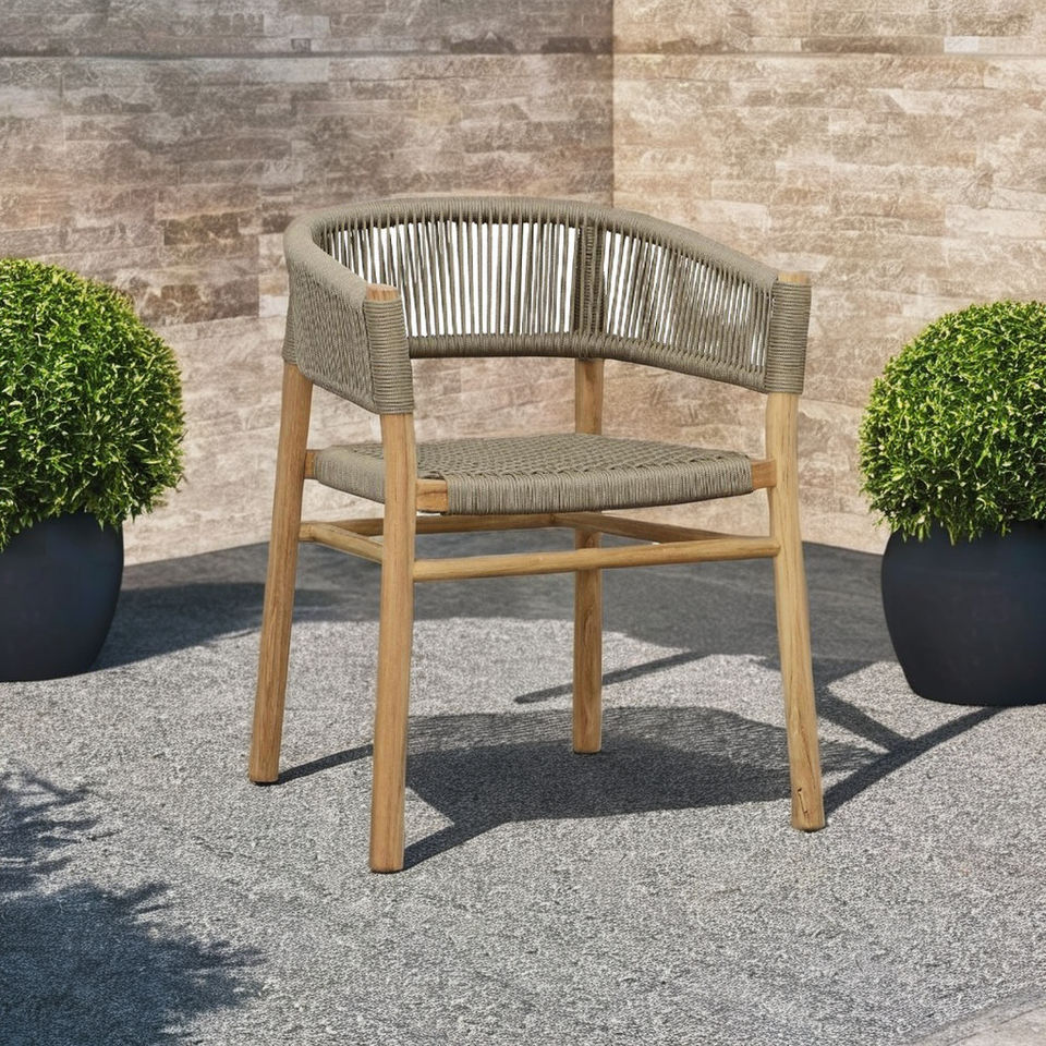 Modern Contemporary Outdoor Teak Frame Rope Natural Finish Eco-friendly Solid Teak Wood Dining Chair for Park Villa Living Room