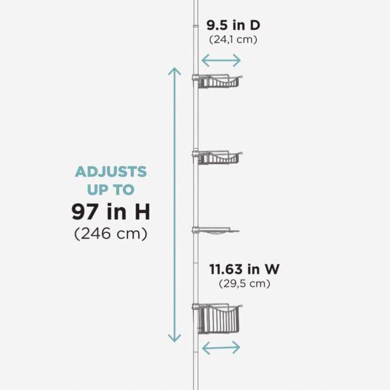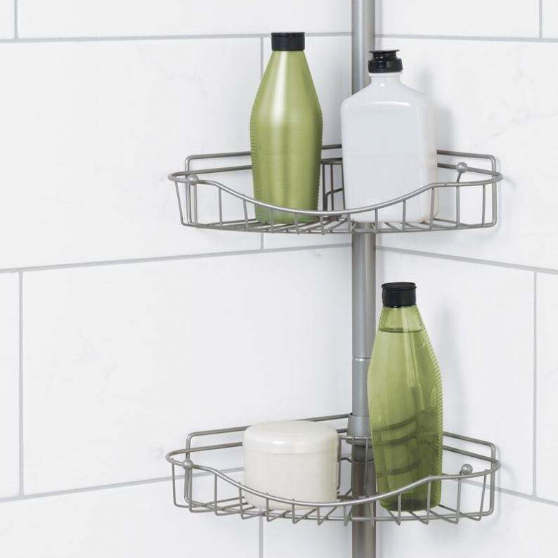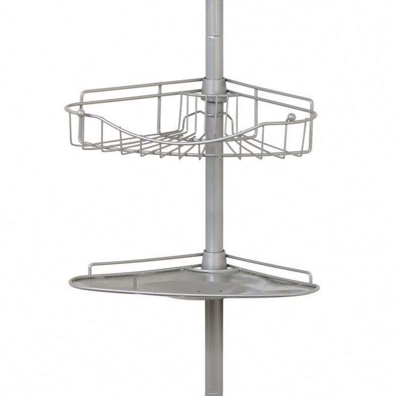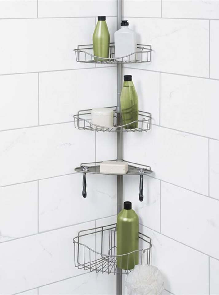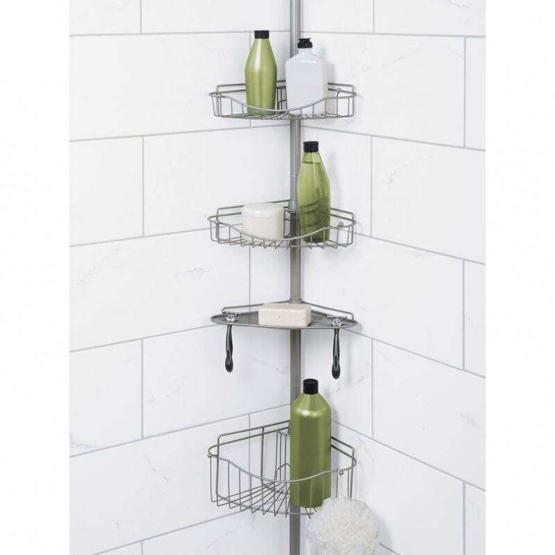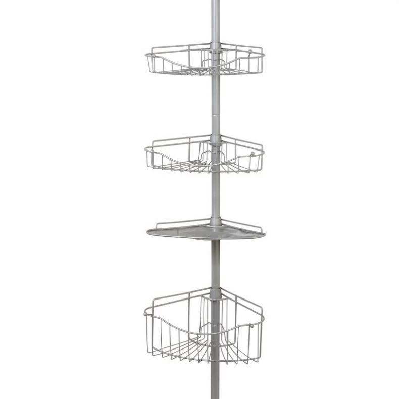 Modern Corner Hotel Use Simple Installation Bath Metal Mesh Shower Rack Height Adjustable Four Tier Powder Coated Caddy Shelf