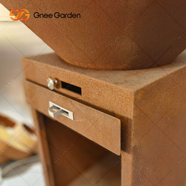 Modern Corten Metal Outdoor Charcoal BBQ Cooking Grill