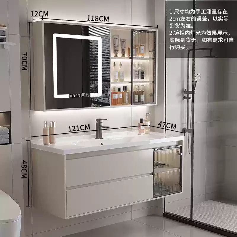 Modern Cream-Colored Bathroom Vanity Integrated Vanity and Countertop Bathroom Cabinet Honeycomb Mirror Cabinet