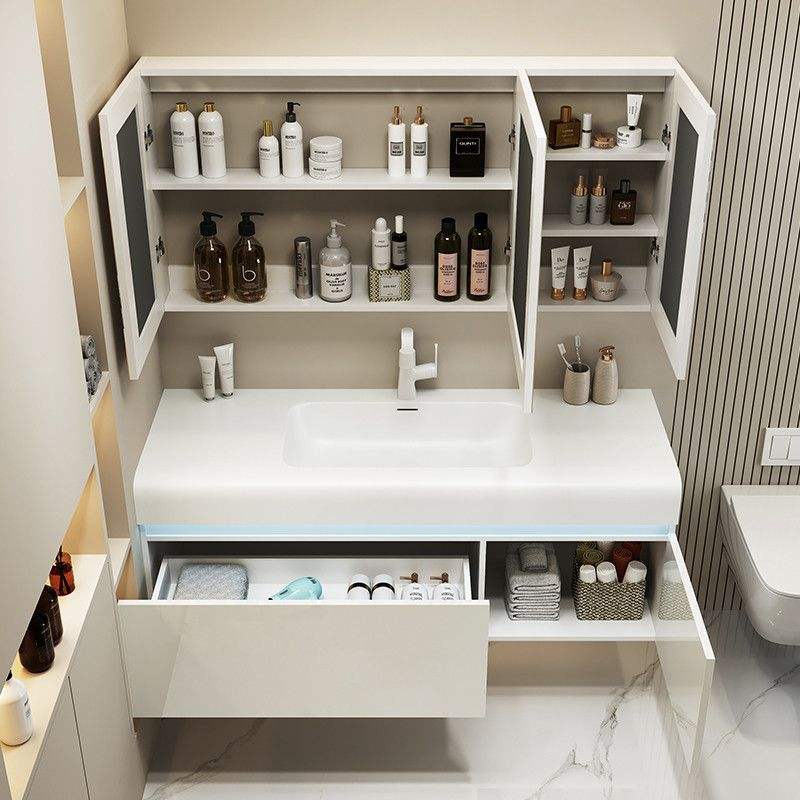 Modern Cream Style Ceramic Integrated Basin Wall-Mounted Bathroom Cabinet Water Resistant Easy Clean Eco-Friendly Durable