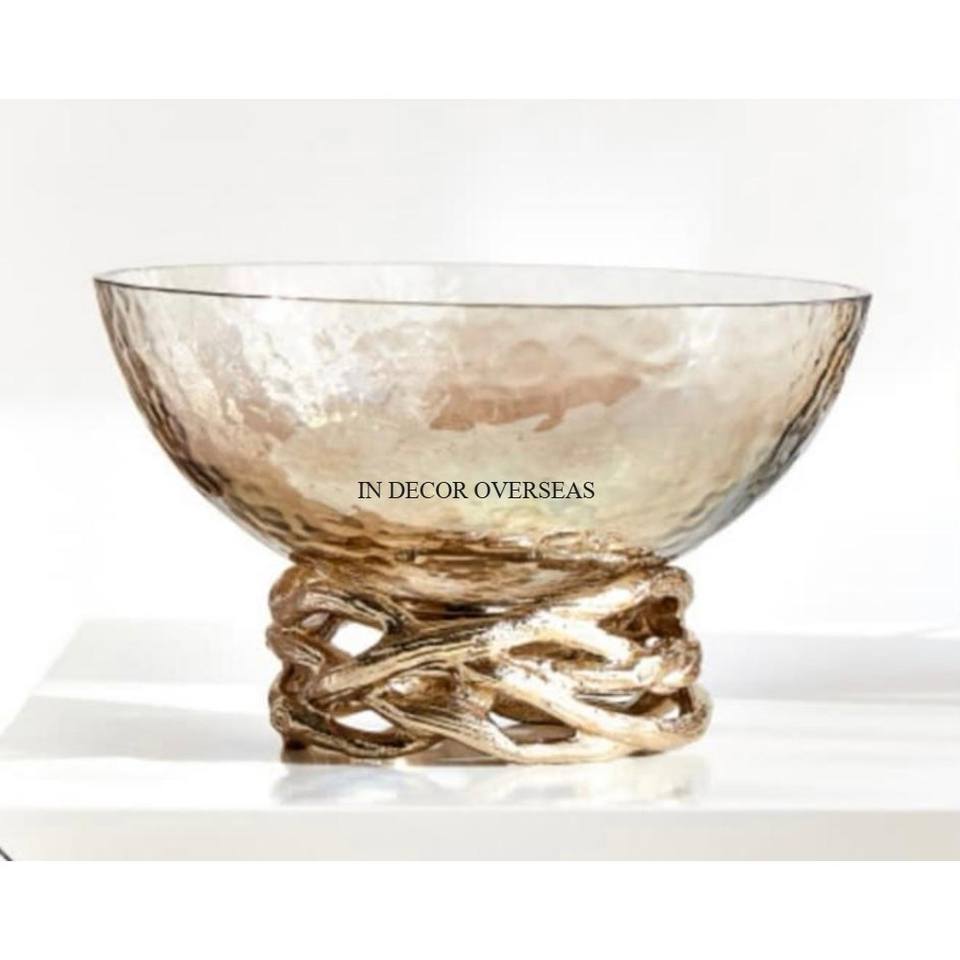 Modern Creative Art And Craft Collection High Grade Gold Plated Superior Quality Metal Made Serving And Table Decorative Bowl