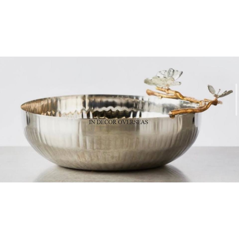Modern Creative Art Collection Luxurious Quality Metal Made Silver Color Finishing Shiny Polished Round Shape Serving Bowls