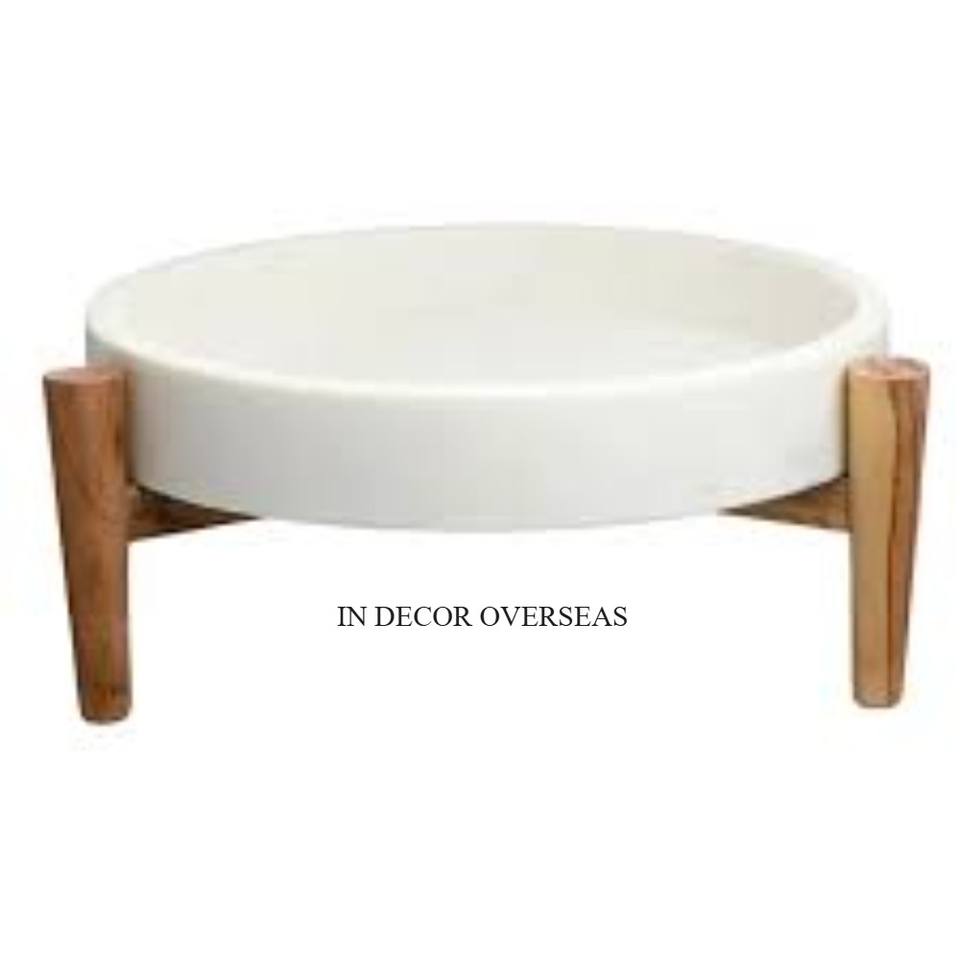 Modern Creative Art Designer Finest Quality White Color Marble Bowl With Wooden Base Wedding And Parties Dining Table Supplies