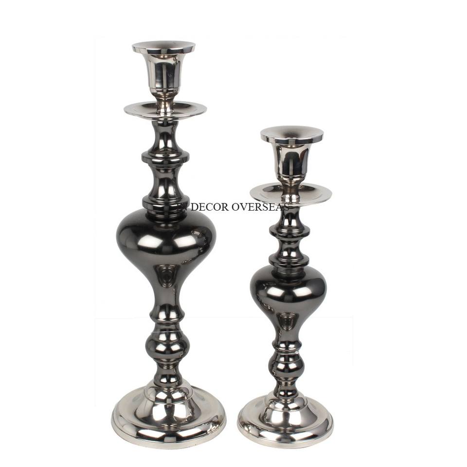 Modern Creative Art Designer Heavy Duty Metal Shiny Polished Unique Texture Set Of 2 Table Centerpiece Candle Stick Holders