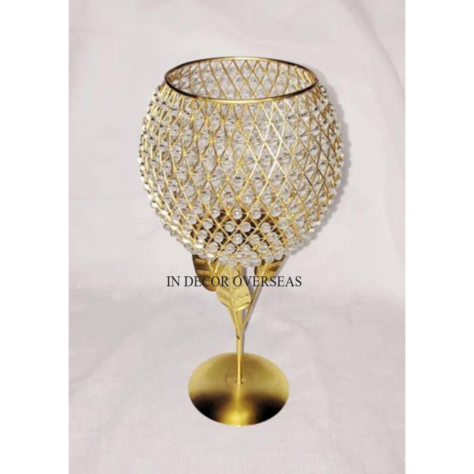 Modern Creative Art Designer High Grade Gold Plated Superior Quality Metal Crystal Beaded Luxury Candle Stick Holder From India