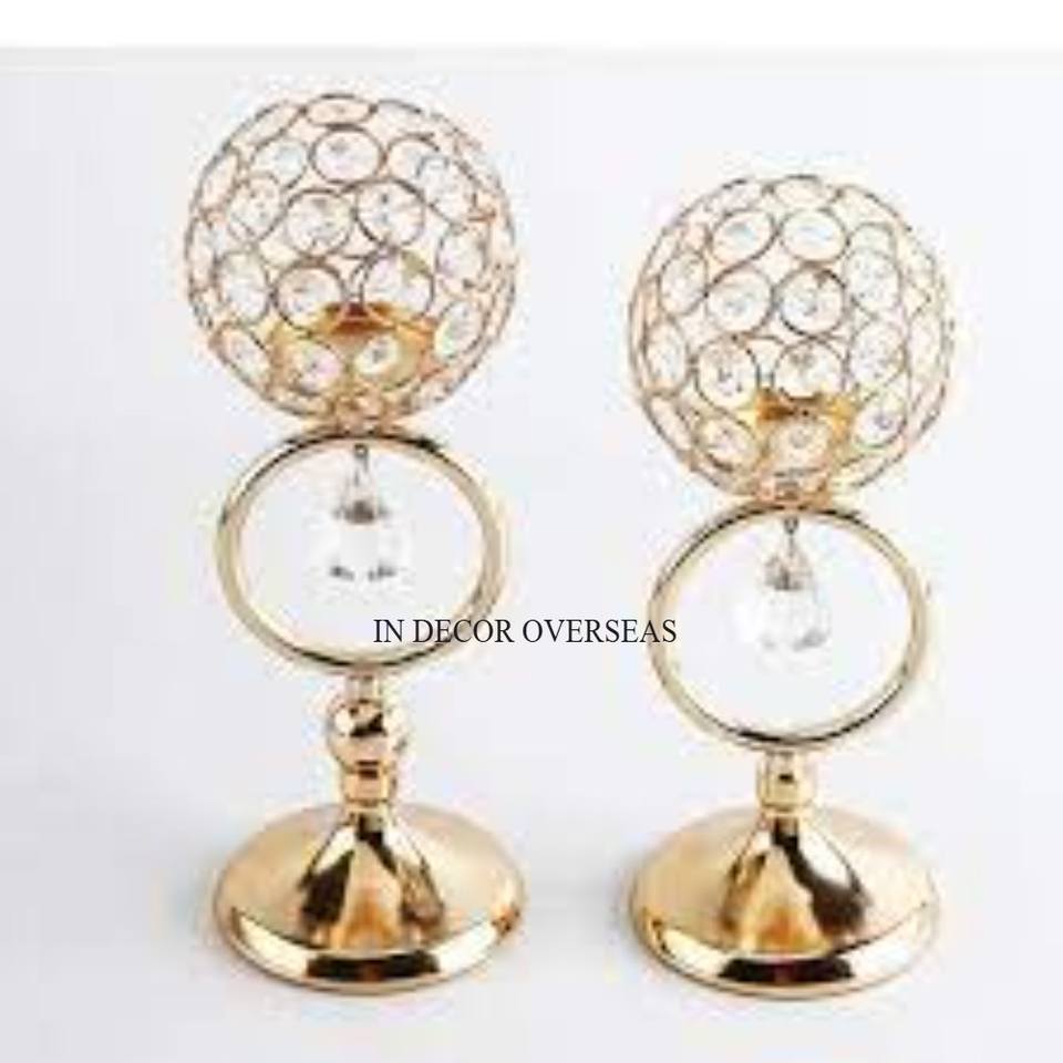 Modern Creative Art Designer Set Of 3 Metal Base For Round Shape Crystal Beaded Candle Holder Votive Wedding Decoration Supplies