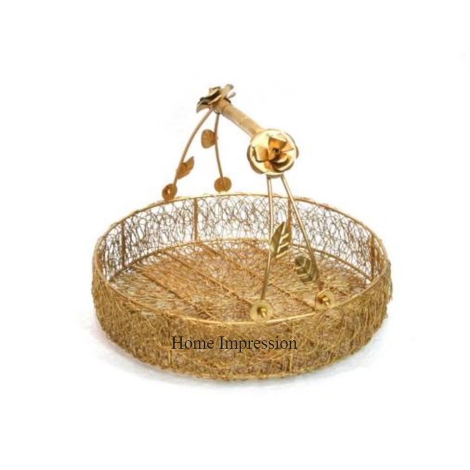 Modern Creative Art Designer White Color Powder Coated Gift Basket With Handle & 4 Gold Color Fancy Designer Storage Containers
