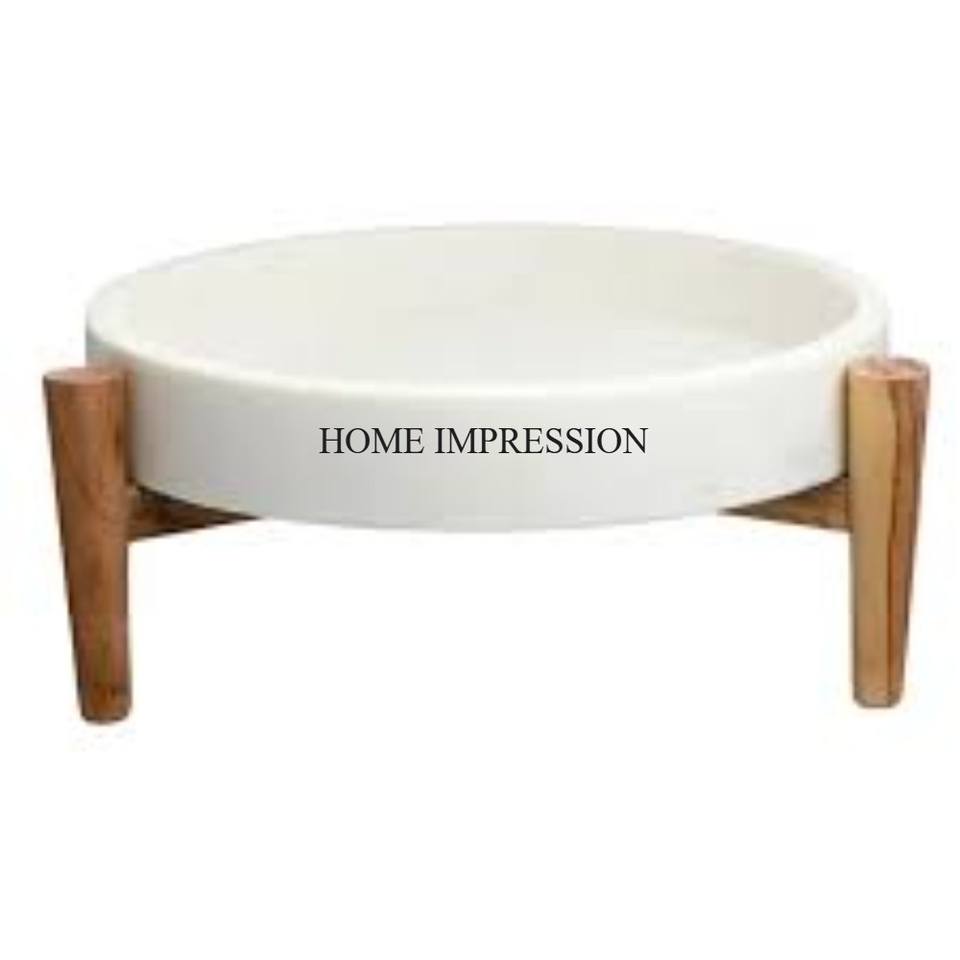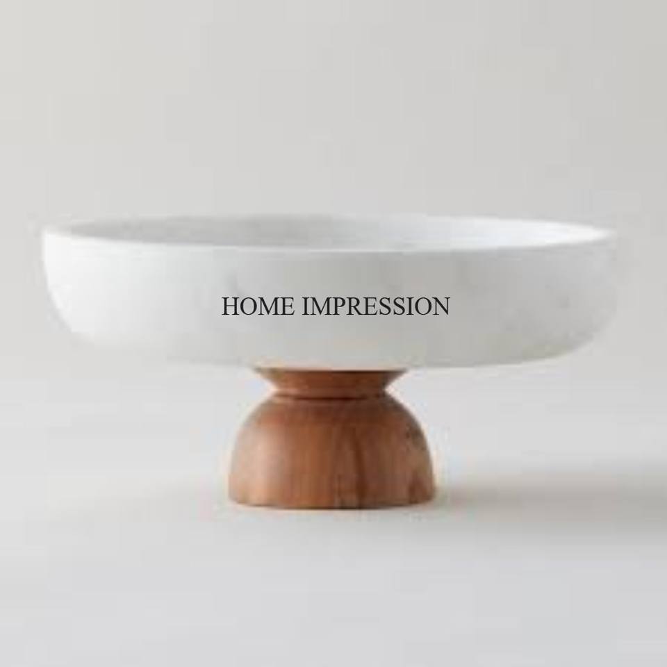 Modern Creative Art Unique Fancy Designer Polished Eco-Friendly White Marble Bowl with Small Wooden Base Competitive Price
