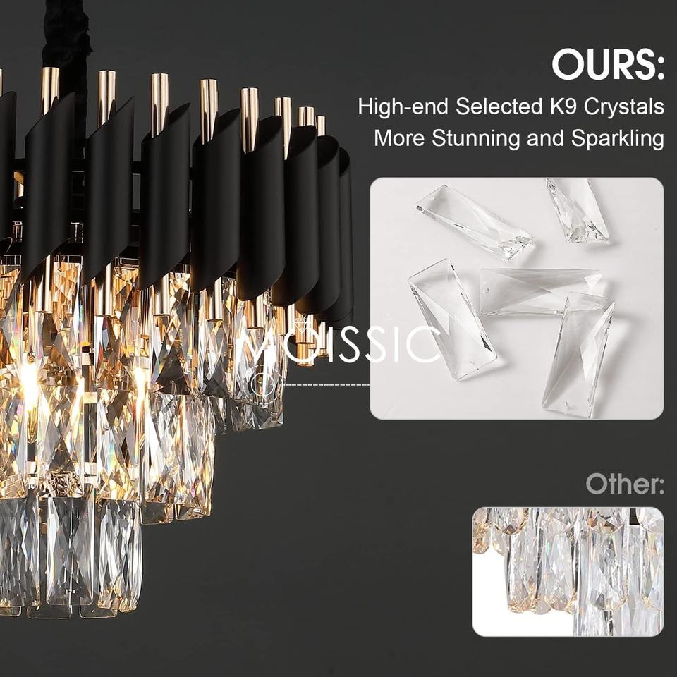 Modern Crystal Chandeliers 3 Tiers Black Gold Pendant Light Fixtures 16in Round Flush Mount Chandeliers Ceiling Lighting
