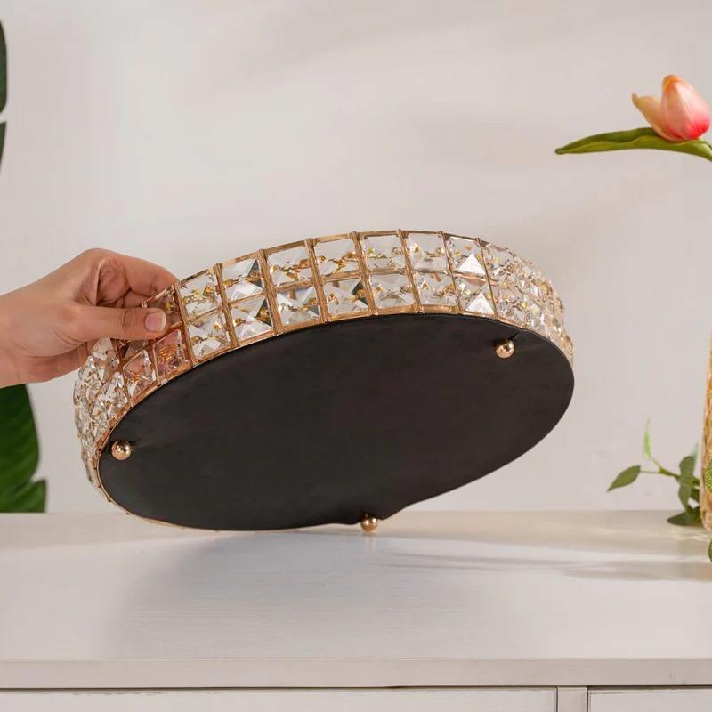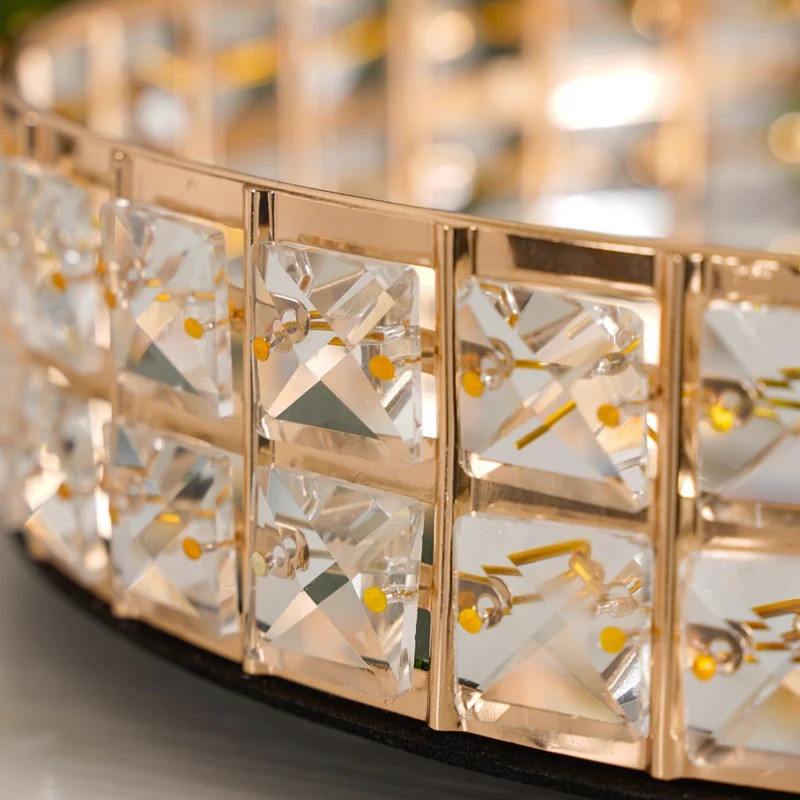 Modern Crystal Mirrored Metal Vanity Tray Gold Trim for Wedding Party Perfume Display Jewelry Organizer Glamorous Home Decor