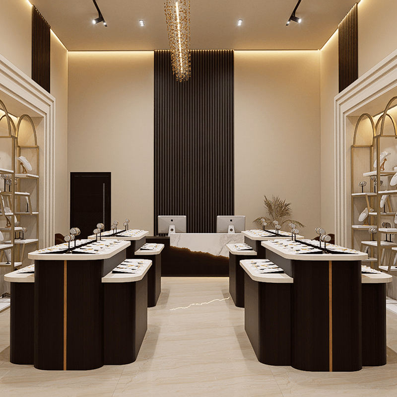 Modern Custom Eco-Friendly Heavy Duty LED-Lit Glass Showcase for Jewelry Shops Interior Fashion Jewellery Display Cabinet