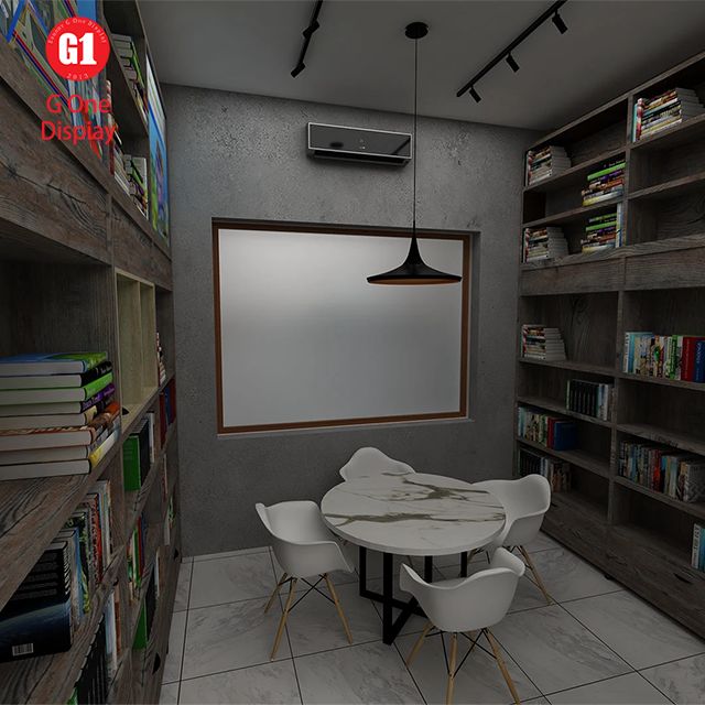 Modern Custom Wooden Book Display Shelves Elegant Library Interior Design with LED Lighting Wall Stand Book Display Furniture
