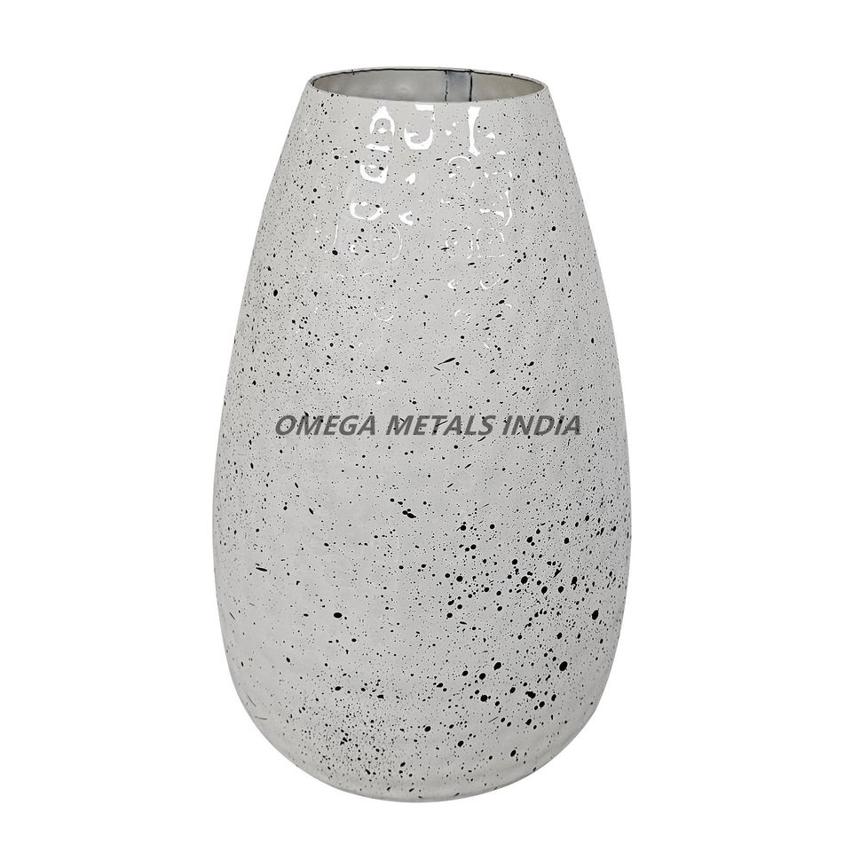 Modern Customized White Speckled Metal Vase with Textured Finish and Sleek Oval Structure for Artistic Home Styling