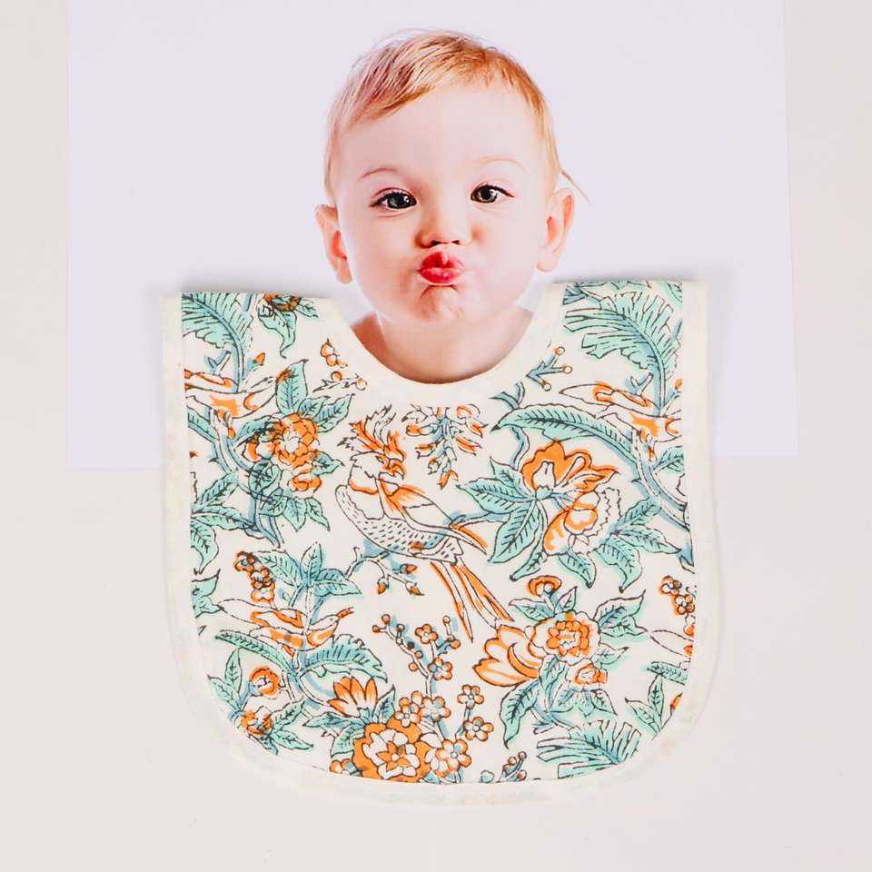 Modern Cute Baby Bib in Pure Cotton in Hand Block Print Anti Dirty Baby Bibs Machine Washable Baby Smock