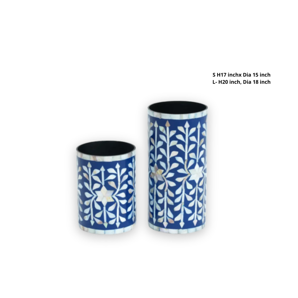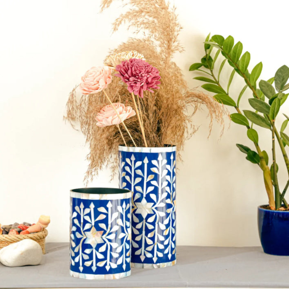 Modern Cylinder Bamboo Vase Mother Pearl Inlay High-End Vietnamese Design for Living Room Entry Counter Table Floor Vase