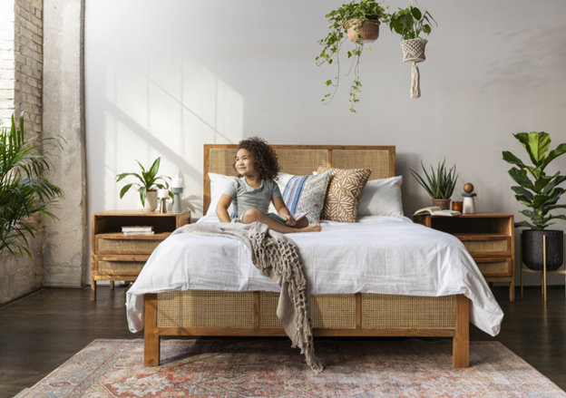 Modern Danish Vintage Bedroom Furniture Rattan Cane Wood Beds
