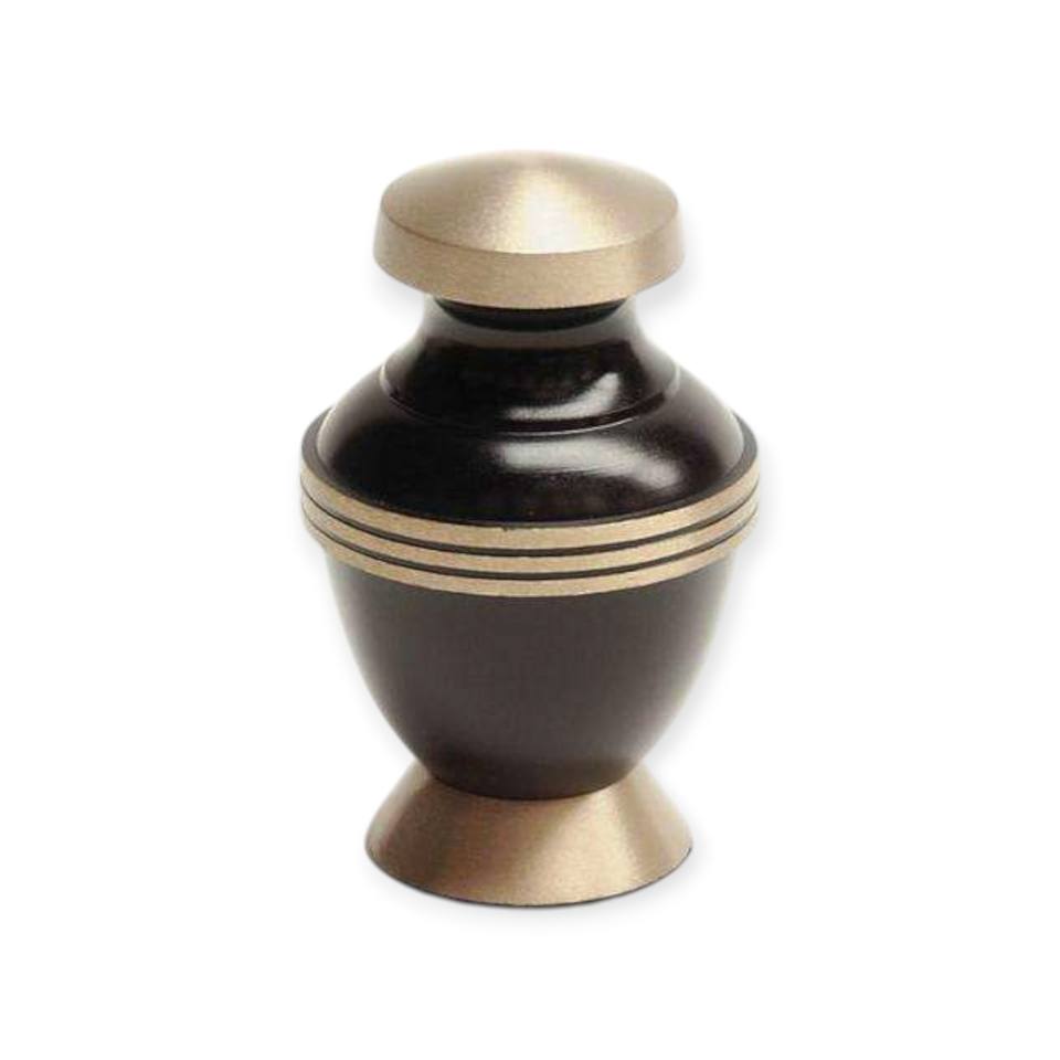 Modern Dark Brown And Gold Metal keepsake Urn With Pedestal Base And Minimal Elegant Design