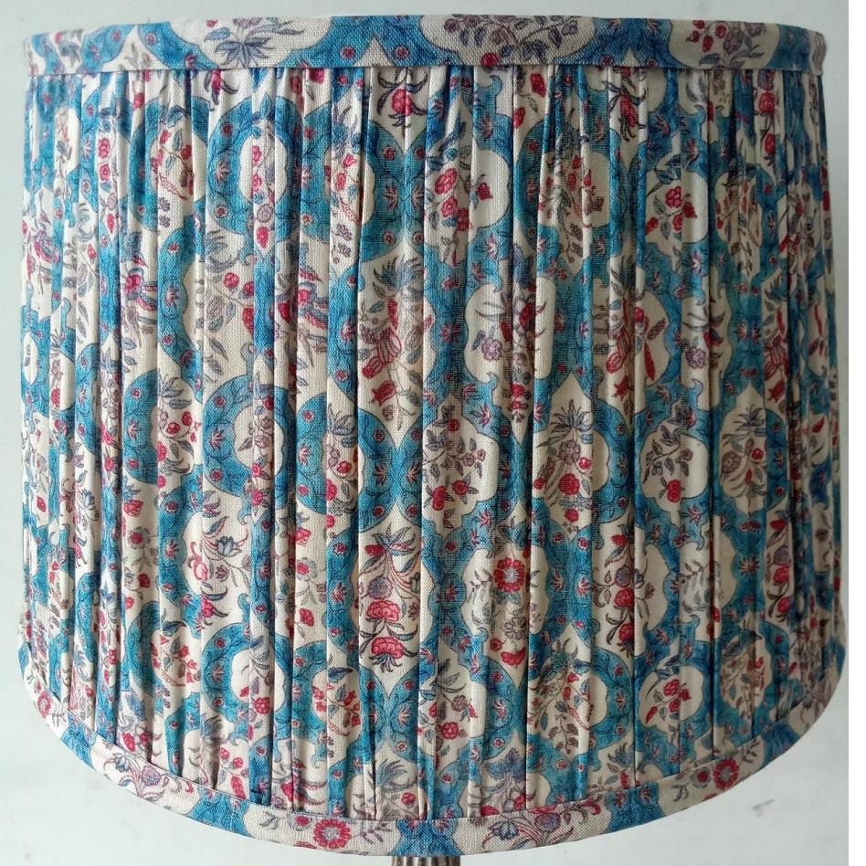 Modern Decorative Gathered Pleated Drum Lampshade in Blue Green Fabric with Ring Set Ideal for Table and Desk Lamps