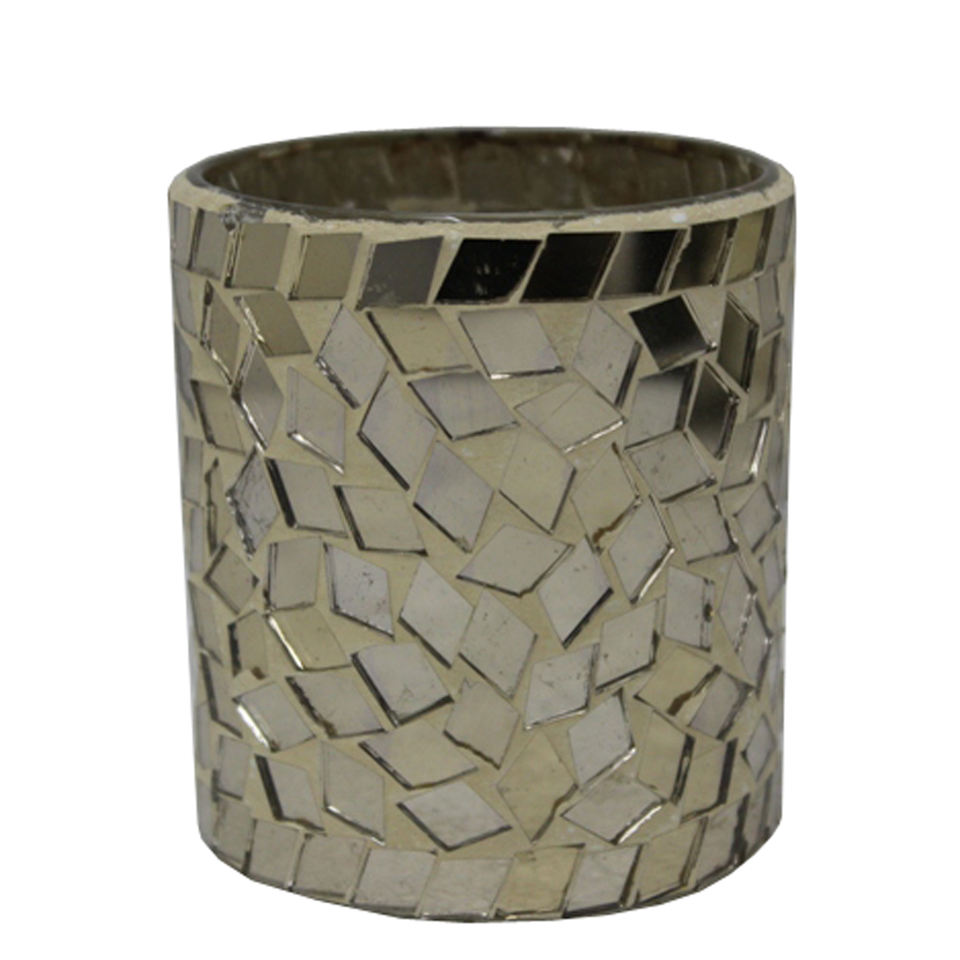Modern Decorative Glass Votive Holder Mirror Mosaic Candle Jar for Living Room & Tabletop Decoration Handmade