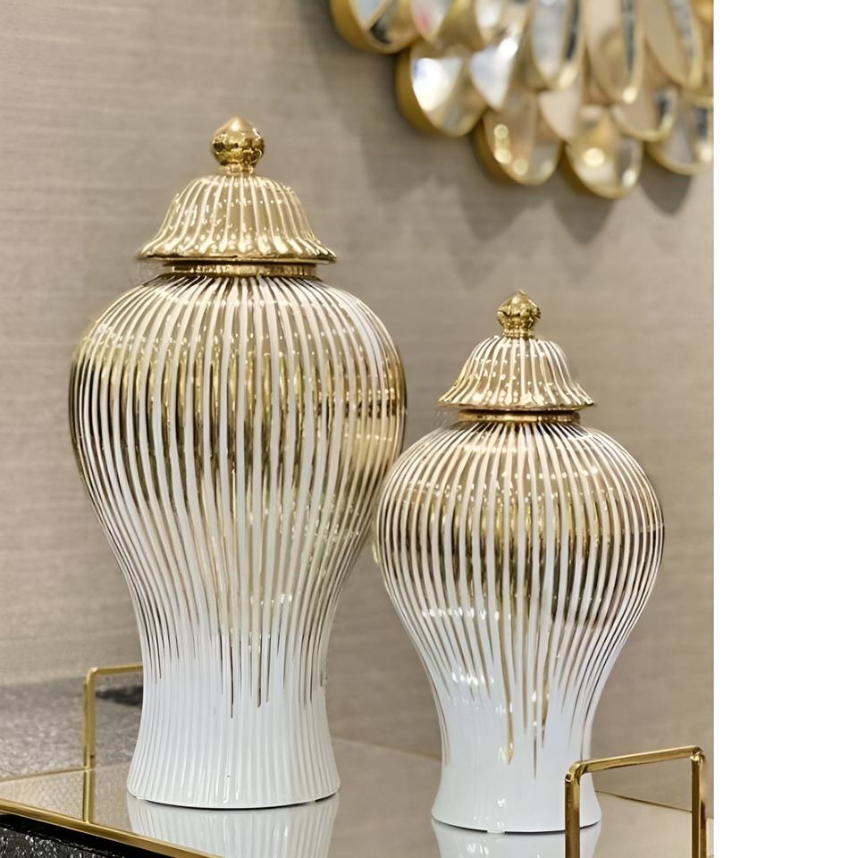 Modern & Decorative Large Size Top Design Golden Metal Vase Flower Decoration Ginger Jar With Beautiful Lid