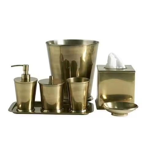 Modern Decorative Metal Bathroom Set With Hand Wash Dispenser