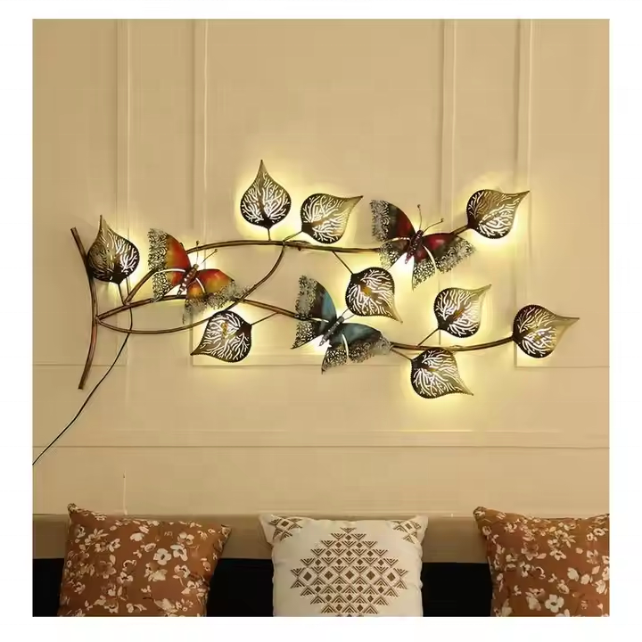 Modern Decorative Wall Art Metal Leaf Walls Decoration Hot Sale Framed Unique Gold Hanging Craft Home Room Decor Flower Wall Art