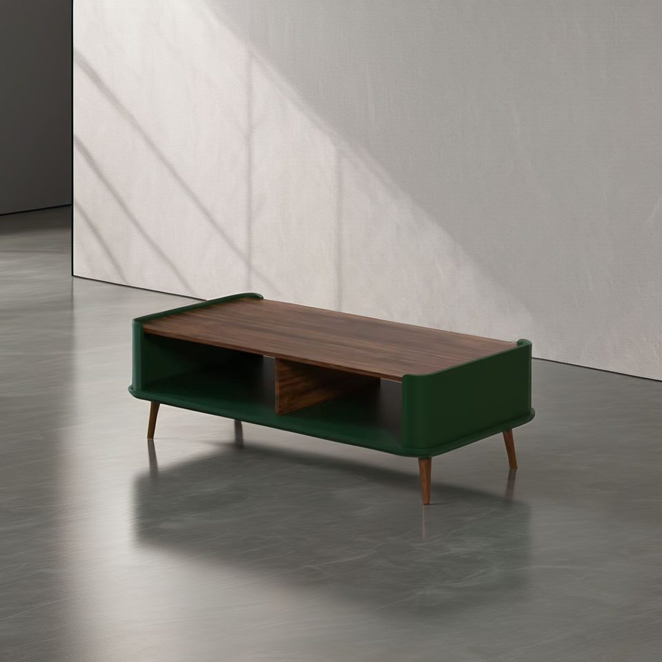 Mid Century Modern Rattan Coffee Table with 2 Storage Drawers Center Table