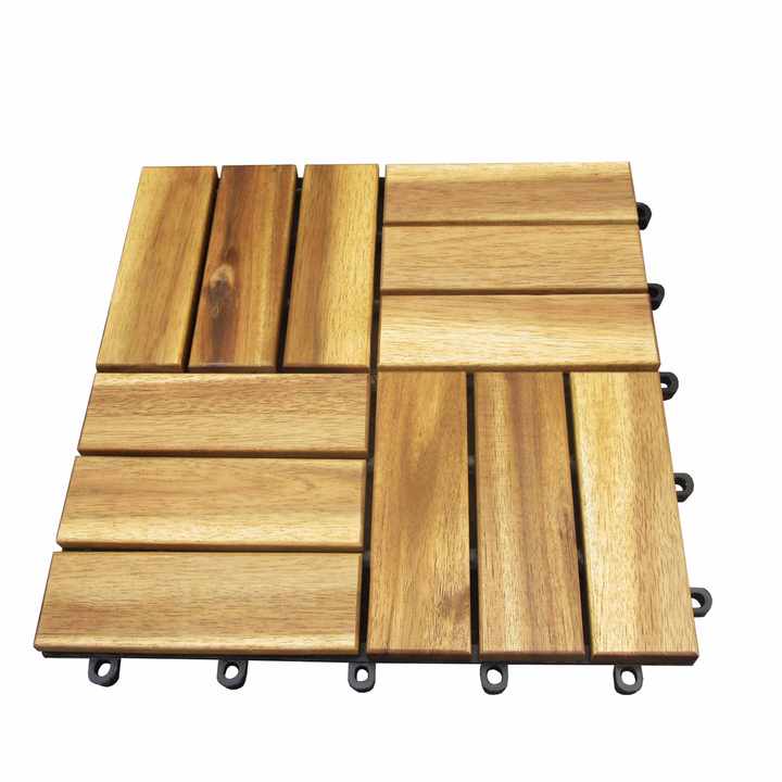 Modern Design 12-Slat Snap-together Acacia Hardwood Flooring Tiles 19/24 mm Thickness Outdoor Decking Patio Made in Vietnam