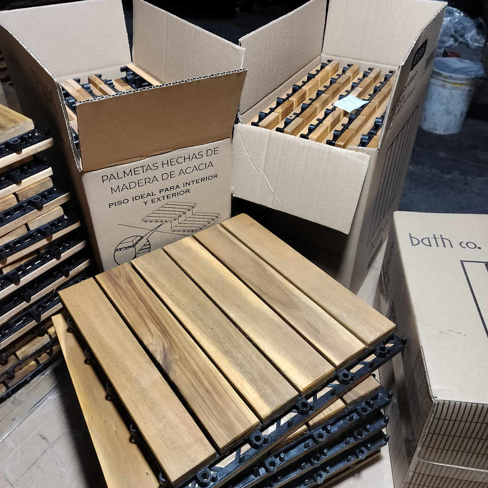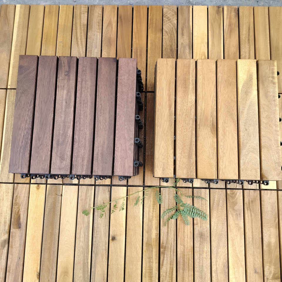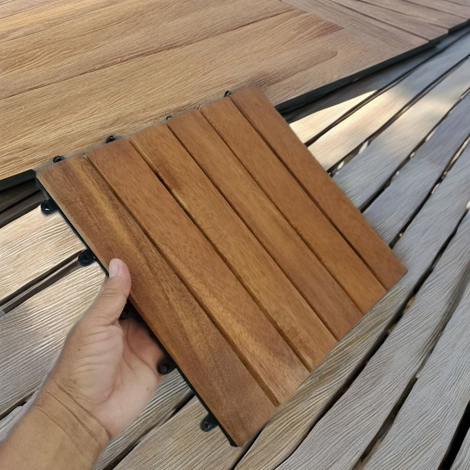 Modern Waterproof Square Acacia Wood Decking Tiles 300x300mm DIY Interlocking for Interior-Exterior Home Garden Terrace Backyard