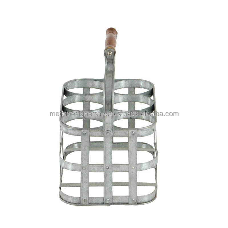 Modern Design 6-Bottle Tabletop Wine Rack Galvanized Iron Aluminium Caddy Holder with Wooden Panel for Home Furniture