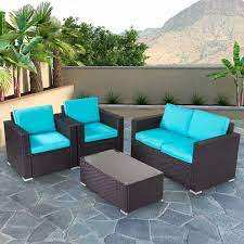 Modern Design All-Weather Outdoor Patio Sofa Wedge Table Set with Washable Seat Cushions Coffee Table for Outdoor Warehouse Use